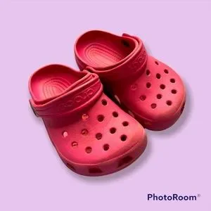Pink Toddler Crocs Size 6/7 in good, used condition. They have been well loved by my daughter & still have a lot of life left in them.