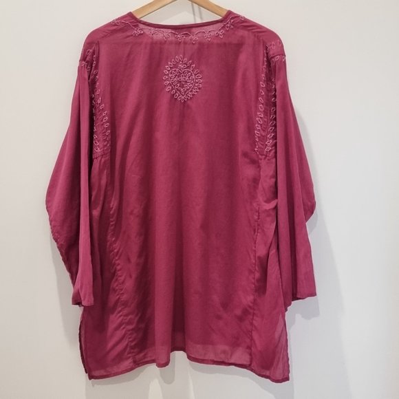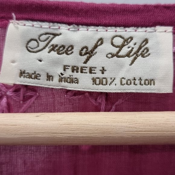 Tree of Life Ladies Blouse Tunic Top One Size Cotton Purple Embroidered