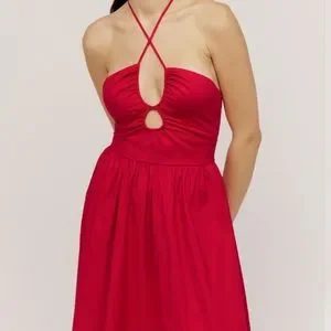 Last One Available! ♥️ Absolutely Stunning & Oh So Flattering NWT Reformation Stassie Sleeveless Halter Tie Midi Dress in Cherry Red as seen on Jennifer Lopez in Corvette Pink