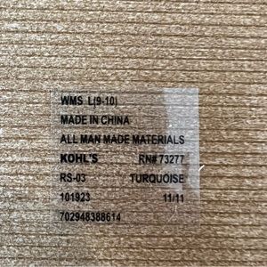 Size 9-10 tan flip flops with faux turquoise stones on straps