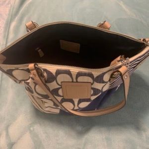 Original Coach handbag in navy and cream. Selling for $120.