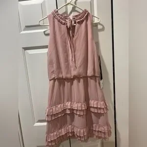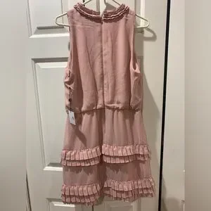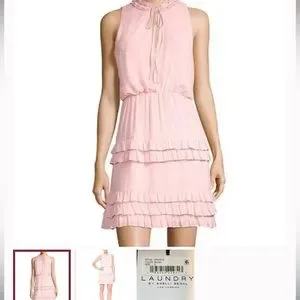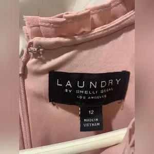 Laundry by Shelli Segal dress, size 12, although NWT, noticed a small snag in the chiffon on the back of dress. Tried to show it from a distance and progressing closer in photos. Otherwise in great condition. Fully lined in soft comfortable jersey material. Beautiful blush color.