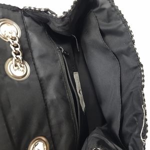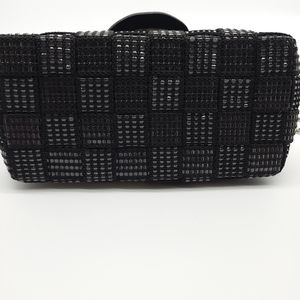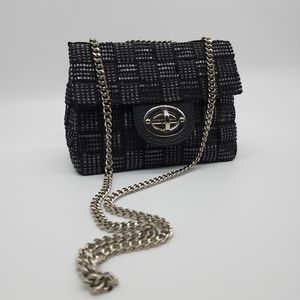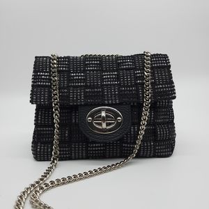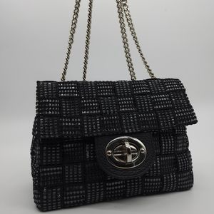 Colour/Style: black Metallic woven leather trim handbag