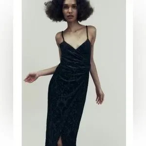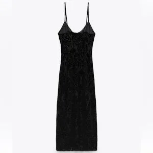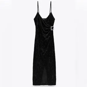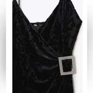 Zara Black Jacquard Dress with Rhinestone Buckle