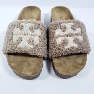 Tory Burch Double T Shearling Sandals - Brown 7M