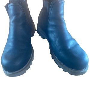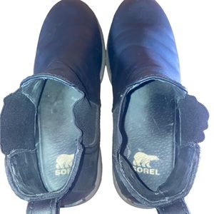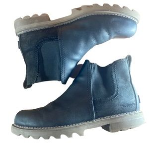 Sorel Mad Brick leather Chelsea boots. Crafted from waterproof leather,round toe,pull on style,back tan pull,textile and leather upper,textile and leather lining.synthetic sole. Good preowned co diction. Wear/damage on bottom soles of boots. Shown in pics. Label is worn size 10.
