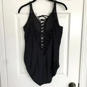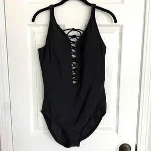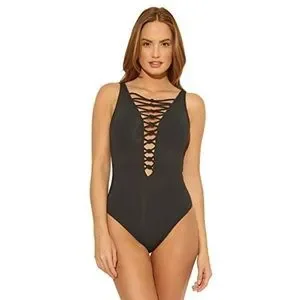 AQUA GREEN Lace Up One Piece Swimsuit in Black