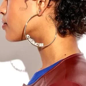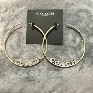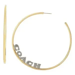 NWT COACH Gold Pave Large Logo Hoop Earrings