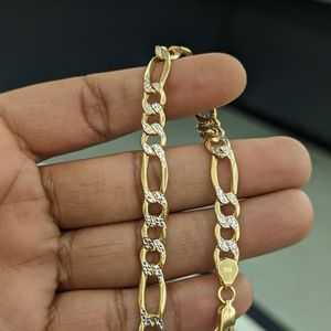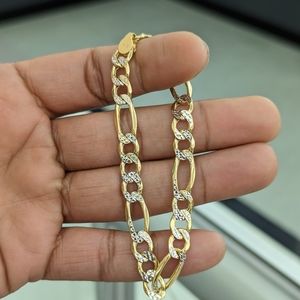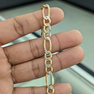 10kt Real Gold Figaro Diamond cut Bracelet