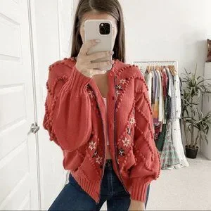 Tags: outerwear, sweater, knit, cardi, casual, floral, embroidered, casual,