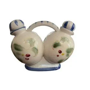 Lovely Nasco hand painted oil and vinegar cruet. One piece design featuring rooster/floral motif. No chips, cracks or crazing. Measures approx 4.5" x 6" x 2.75"