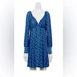 NWT Blue floral Lily Rose scoop neck shirt dress. Short size large