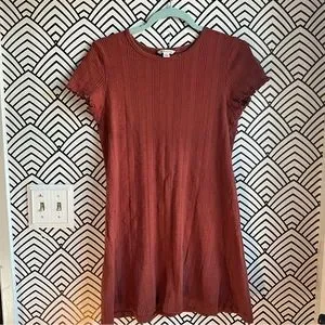 American eagle Rib t-shirt dress shirt sleeve rust 2000s
