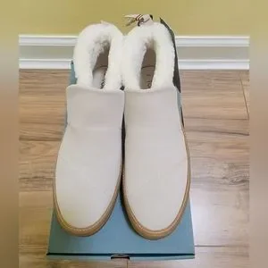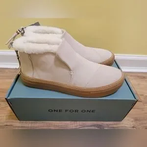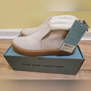 TOMS Women's Paxton Mid Top Boots Cream Suede with Faux Fur Size 8