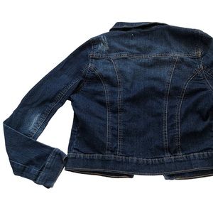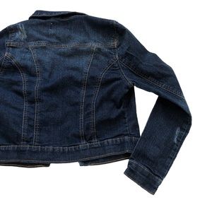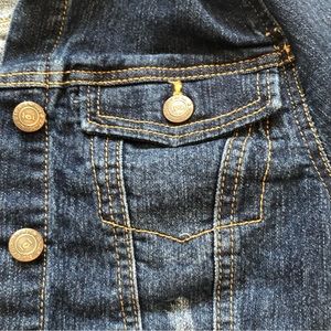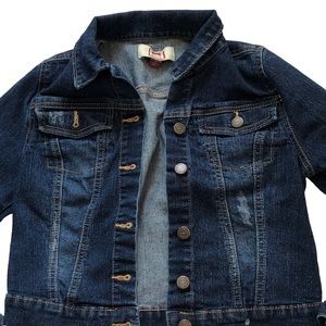 This denim jacket from Lei is a girls size medium. Dark denim with some distressed detailing. Double front pockets, slightly cropped style. Lei buttons. Excellent condition! Your satisfaction is very important to me, please let me know if you have any questions before purchasing. Thank you for visiting my listing and Happy Shopping!