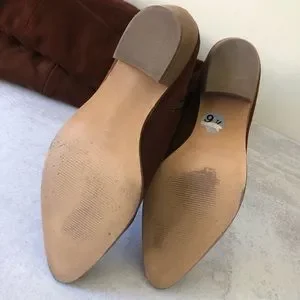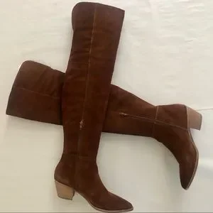 Steve Madden Lucca Pieced Suede Over the Knee Stacked Heel Boot, Cognac 9.5