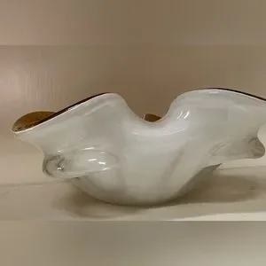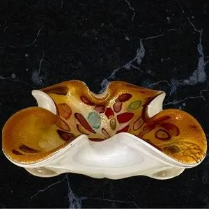 Vintage Murano Vetreria Fratelli Toso Rolled Sides Hollow Canes Cased Bowl