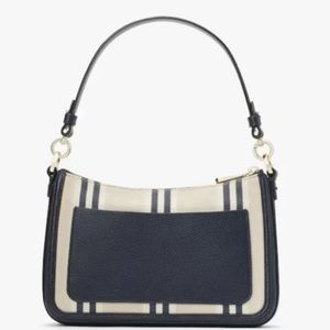 Kate Spade Hudson Striped Canvas Medium Convertible Crossbody Blue Beige