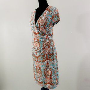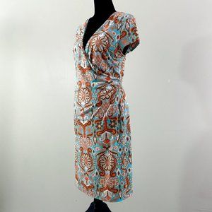 Paisley Crossover Faux Small Wrap Midi Dress Blue Jones New York Signature