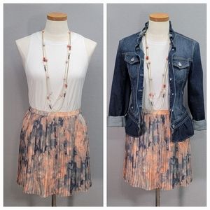 Beautiful peach and gray watercolor mini skirt with pleated design. Size S, new in excellent condition.