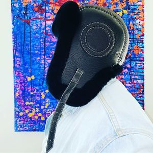 Mens Aviator Rabbit Fur Sheepskin Genuine Leather Hat