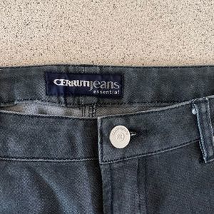 These straight legged mid rise jeans by Paris designer Nino Cerruti have a full leg crease down both the front and back of the leg for a more professional look. They are a mid rise with 5 pockets.