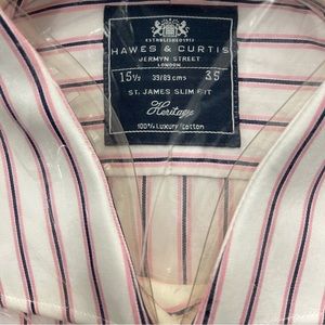 Hawes and Curtis Pink/Navy stripe dress shirt Sz 15.5