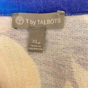 preowned button up front, abstract print, u can see through it, has ruffled cuffs, in great shape