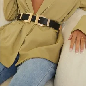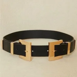 💥SALE💥Black Double Gold Square Buckle Waist Belt