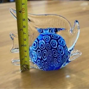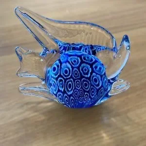 Vintage Blue Millefiori Murano-Style Art Glass Angel Fish