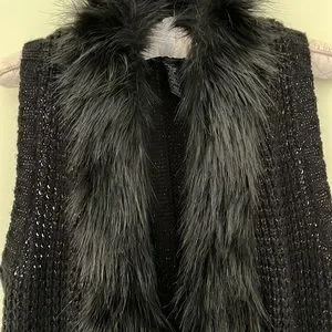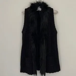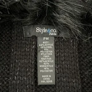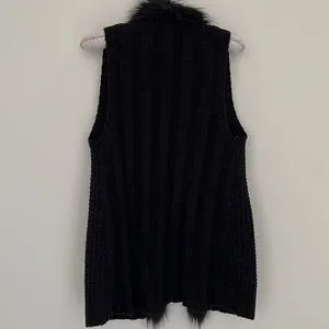 Style & Co women’s Knit Vest Size PM with faux fur Open front 2 pockets Wool/polyester Color Black New with out tag Meashures: Underarm to underarm-19 in Length-27 in