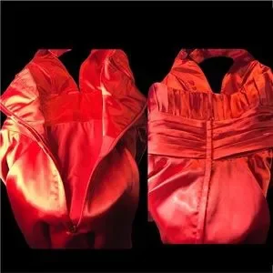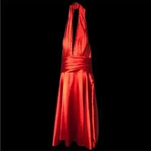 Vintage red satin halter dress for pinup girl, Marilyn.