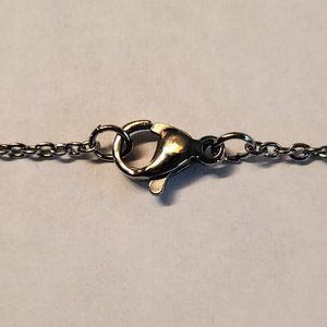 On an 18-inch silver tone chain.