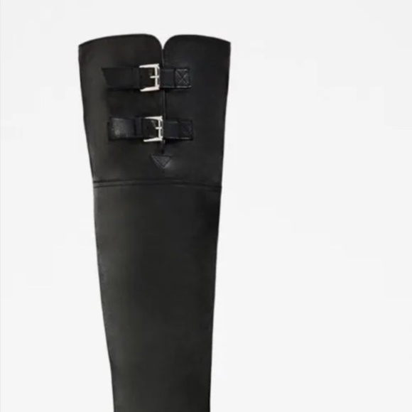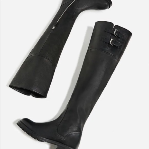 ZARA Leather 2 Buckle Over The Knee Lug Sole Tall Boots
