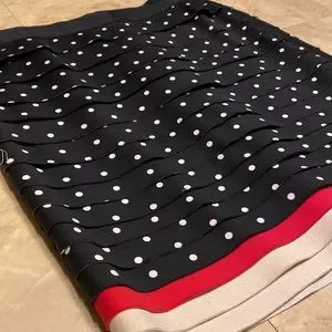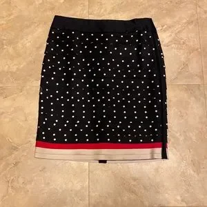 Black Skirt with white polka-dots, with red and cream stripe at knee length