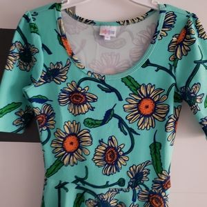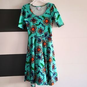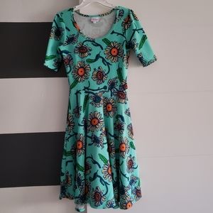 EUC LULAROE Nicole emerald green floral skirt dress (S > 6-8)