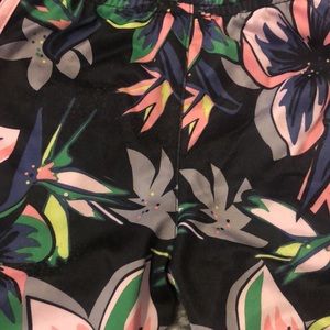 EUC. Black with floral print and pink stripes on outer leg. Pink embroidered Adidas logo on upper left hand side. Has functional pockets. Slight wear on the left backside (see last pic).