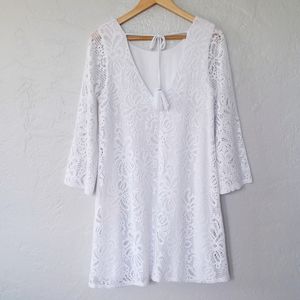 Lilly Pulitzer Foley Dress Resort White Whirlpool Knit Lace A-Line Swing Dress L