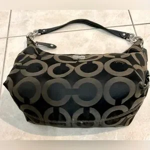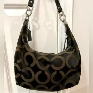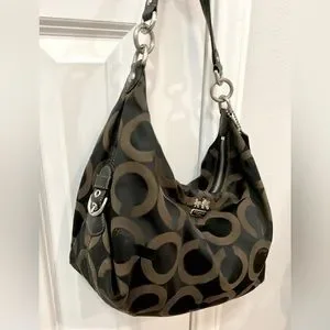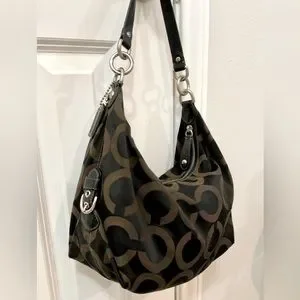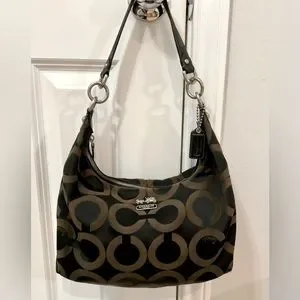 Coach Madison Op Art Satin Hailey Brown Shoulder Bag 14337