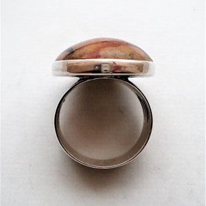 Gorgeous HUGE Designer Jay King Drt signed solid Sterling Silver 925 bezel set genuine Picture Jasper Cocktail Dinner Ring about size 9 (marked "Drt .925" and acid tested). drt means desert rose trading. mine finds Top of the ring is about 1 3/16" in length by about 7/8" in its widest. Genuine bezel set Picture Jasper Cabochon is about 29mm by 21mm. This unique ring weighs about 14 grams and is in great pre-owned condition.