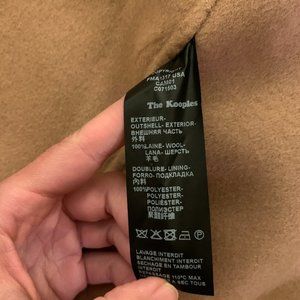 NWT Kooples tan wool coat xs. This coat is NWT but missing a button! It can be replaced because the button isn't too fancy or ornate. It is a size 34 which they state is an xs however I normally wear a small and it fits. It's deff. a loose fit. Very classic and chic!