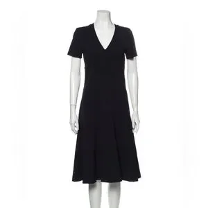 Beautiful and very flattering a-line Derek Lam dress in navy. Stretchy fabric, mid length, pretty detailing.