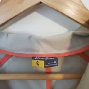 Eddie Bauer Voyager 2.0 Women's Travel Jacket, Beige with Orange Piping. No tags, seems like it has never been worn!