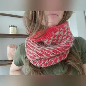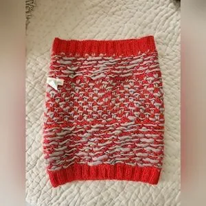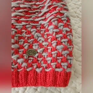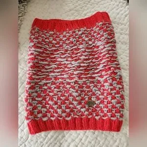EUC emiLime Slub Knit Snood Sarf from Urban Outfitters | chunky alpaca/wool neck warmer | red and grey color with multi-textured knitting | ribbed ends