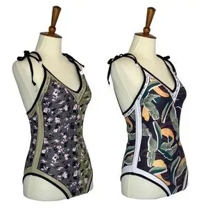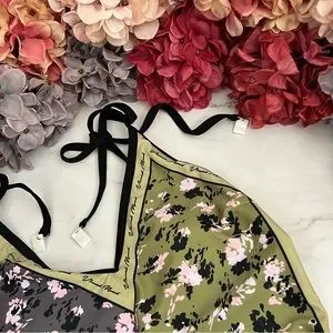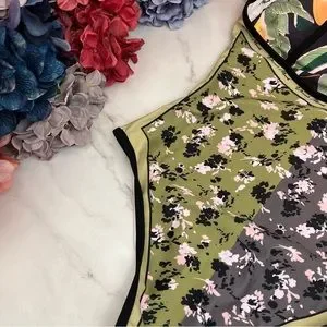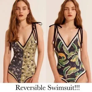 Bohemian Green and Black Floral Reversible Swimsuit with Shoulder Ties