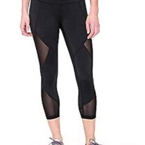 * ATHLETA * Aura Sonar Black Mesh Cropped Leggings size Medium with cut outs