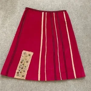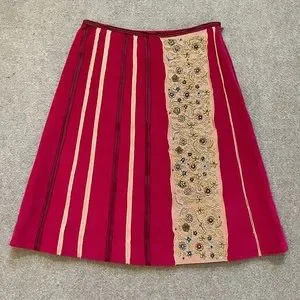 Beautiful knee length A-line pink/magenta skirt with a delicate beaded detail.