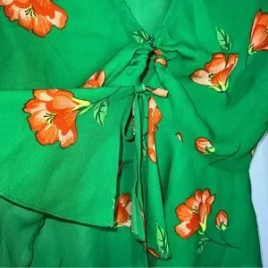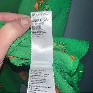 &Topshop green with orange flowers floral top blouse shirt with tie front new 4