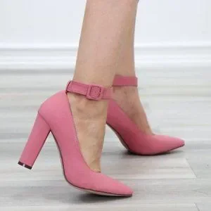 Pink Pointy Toe Ankle Brace Buckle Heels