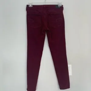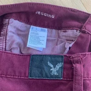 American Eagle stretch wine jegging 8. Great condition. Super stretch jegging. 48% cotton, 24% lyocell, 20% viscose, 8% elastine. Nice soft fabric. 4 pockets. Waist measured flat 15-1/2”. Hips measured flat 17”. Rise 7-1/2” to base of waistband. Inseam 28”. Cuff measured flat 4-1/2”. Excellent condition. Posh Ambassador, quick shipper, five-star seller, non-smoking home.
